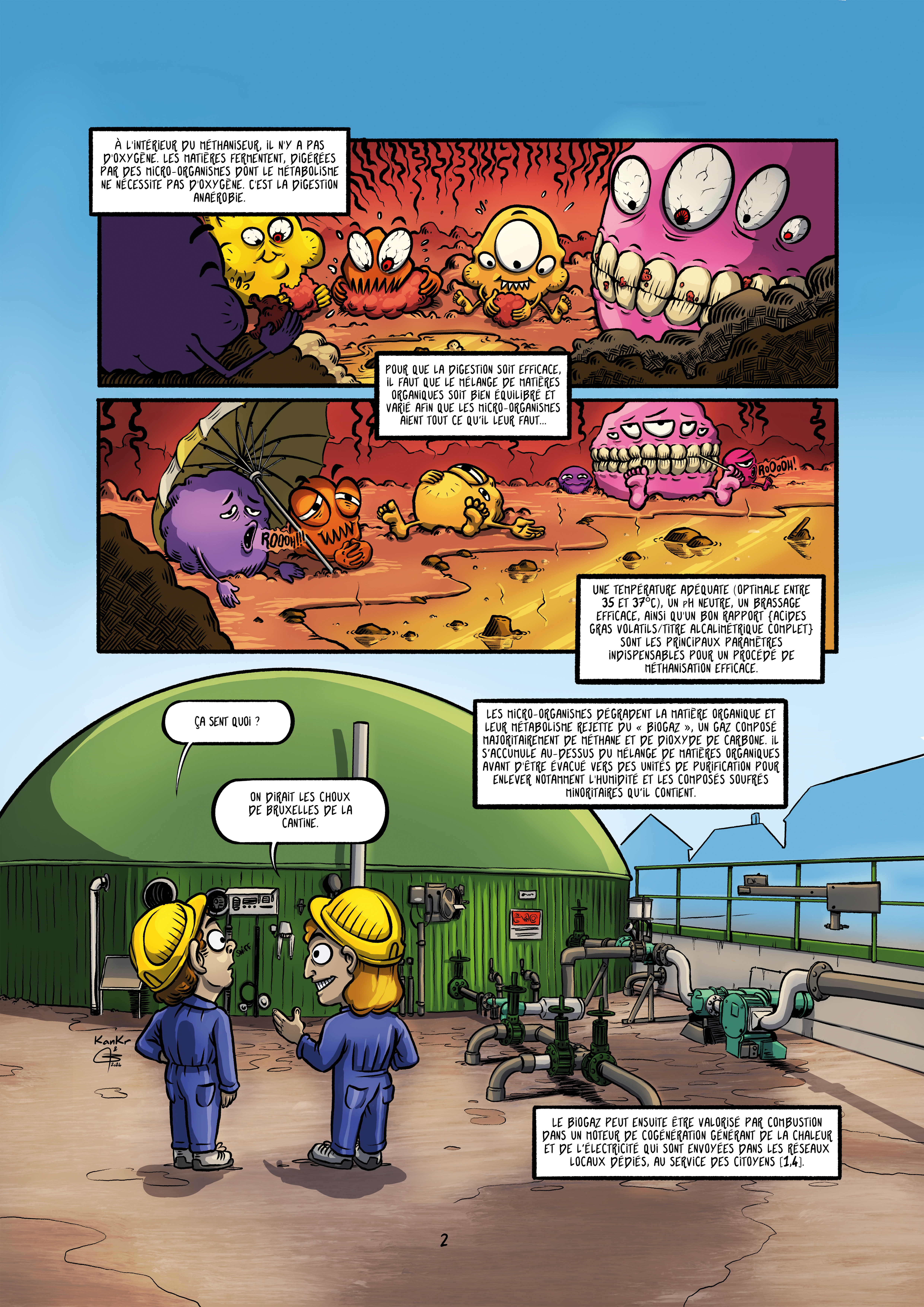 Le biogaz est un gaz issu de la fermentation anaérobie, c’est-à-dire en absence d'oxygène, de matières organiques. Il peut s’agir de résidus agricoles, de fumiers, d’effluents de l’industrie agro-alimentaire, de déchets verts, de déchets ménagers organiques ou compost, de boues de stations de traitement d’eaux usées etc … Ce processus biochimique naturel, aussi appelé méthanisation, a été perfectionné et porté à l’échelle industrielle : les matières organiques sont rassemblées dans des réacteurs, appelés méthaniseurs ou digesteurs dans lesquels l’absence d’oxygène est garantie. Au cœur des méthaniseurs, un consortium de bactéries digère et dégrade les matières organiques. Les consortiums de bactéries sont généralement formés par les interactions de deux ou plusieurs groupes de bactéries permettant d'améliorer le taux de dégradation. Le métabolisme de certaines bactéries rejette du dioxyde de carbone (CO2) tandis que d’autres bactéries dites méthanogènes rejettent du méthane (CH4). Ces deux gaz, le CO2 et le CH4, sont donc les constituants majoritaires du biogaz ainsi généré, comptant respectivement pour environ 40% et 60% du volume de gaz. Le CH4 étant un combustible, l’intérêt de la production de biogaz est de valoriser les déchets organiques engendrés par notre société en les transformant en un gaz à haute valeur énergétique [1].