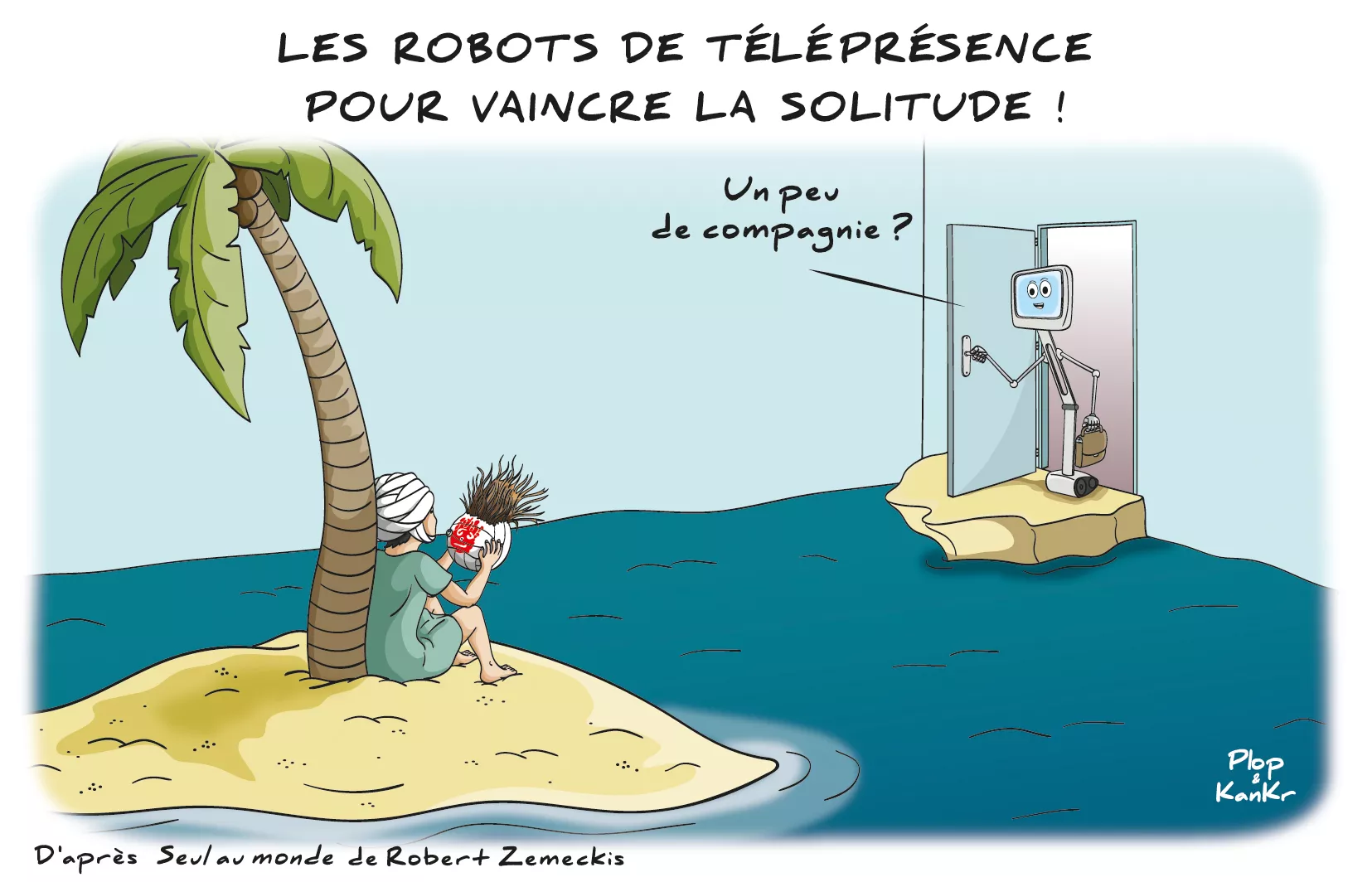 Un robot de téléprésence est un système de visioconférence positionné sur un socle mobile. La partie visioconférence permet à la personne qui s’y connecte – ou pilote – d’apparaître sur l’écran qui constitue la tête du robot. Cela lui permet d’échanger oralement et visuellement avec les personnes à proximité, mais également de faire bouger le robot, grâce à la possibilité de piloter à distance le socle mobile. La personne acquiert ainsi une « vraie » présence physique et peut donc, à sa guise, se déplacer dans l’environnement via le robot, alors même qu’il est géographiquement éloigné de cet espace.