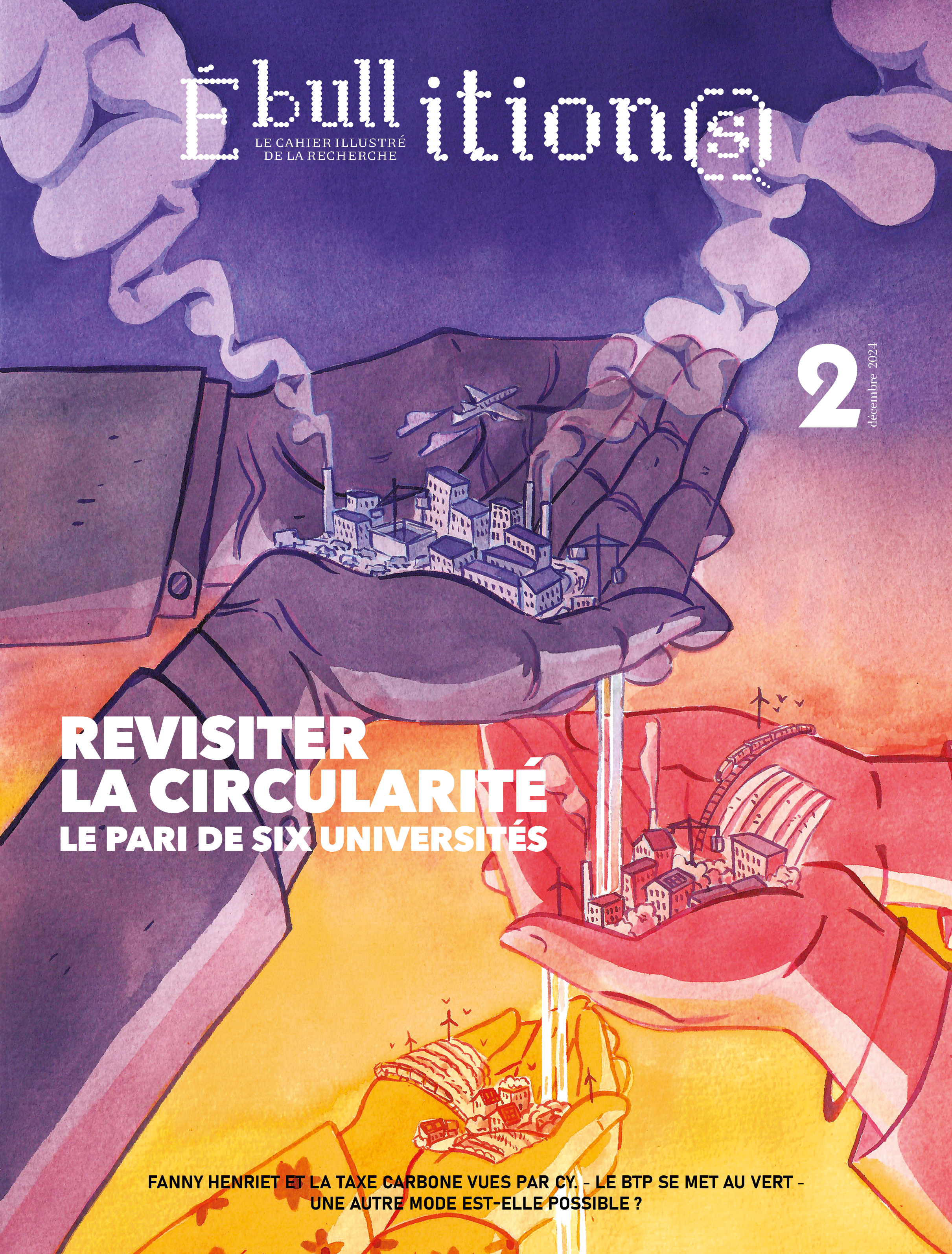 Ce deuxième numéro d’Ébullition(s) a été préparé en collaboration avec les six universités membres de L’Initiative : Université Clermont Auvergne, Cergy Paris Université, Université de Lille, Nantes Université, Université Gustave Eiffel et Université de Pau et des Pays de l’Adour. Après concertation entre partenaires, il a été décidé que le sujet porterait sur l’économie circulaire et la construction vertueuse, notamment sur le réemploi des matériaux et le recyclage des matières premières.