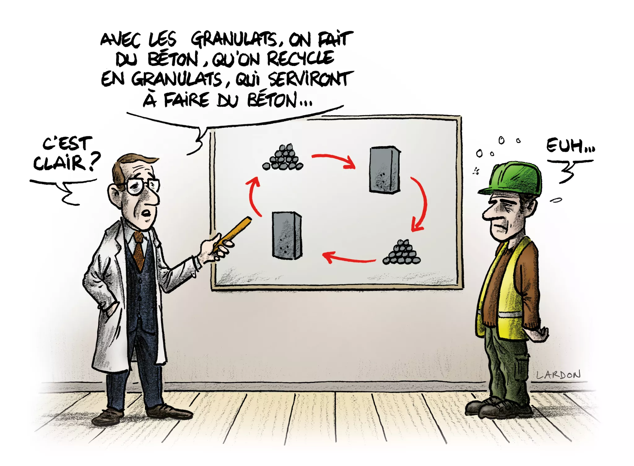 L’écoquartier LaVallée a ainsi permis de démontrer sur une grande échelle que le recyclage du béton est possible sur un vrai chantier avec des effets bénéfiques : préservation des ressources naturelles et limitation des transports (diminution des nuisances sonores, émissions supplémentaires de CO2 évitées) avec une solution techniquement et économiquement pertinente. Ce résultat a été obtenu grâce à une attention particulière portée à la caractérisation en amont, au nettoyage des gravats de démolition, à un tri minutieux et à un stockage propre.