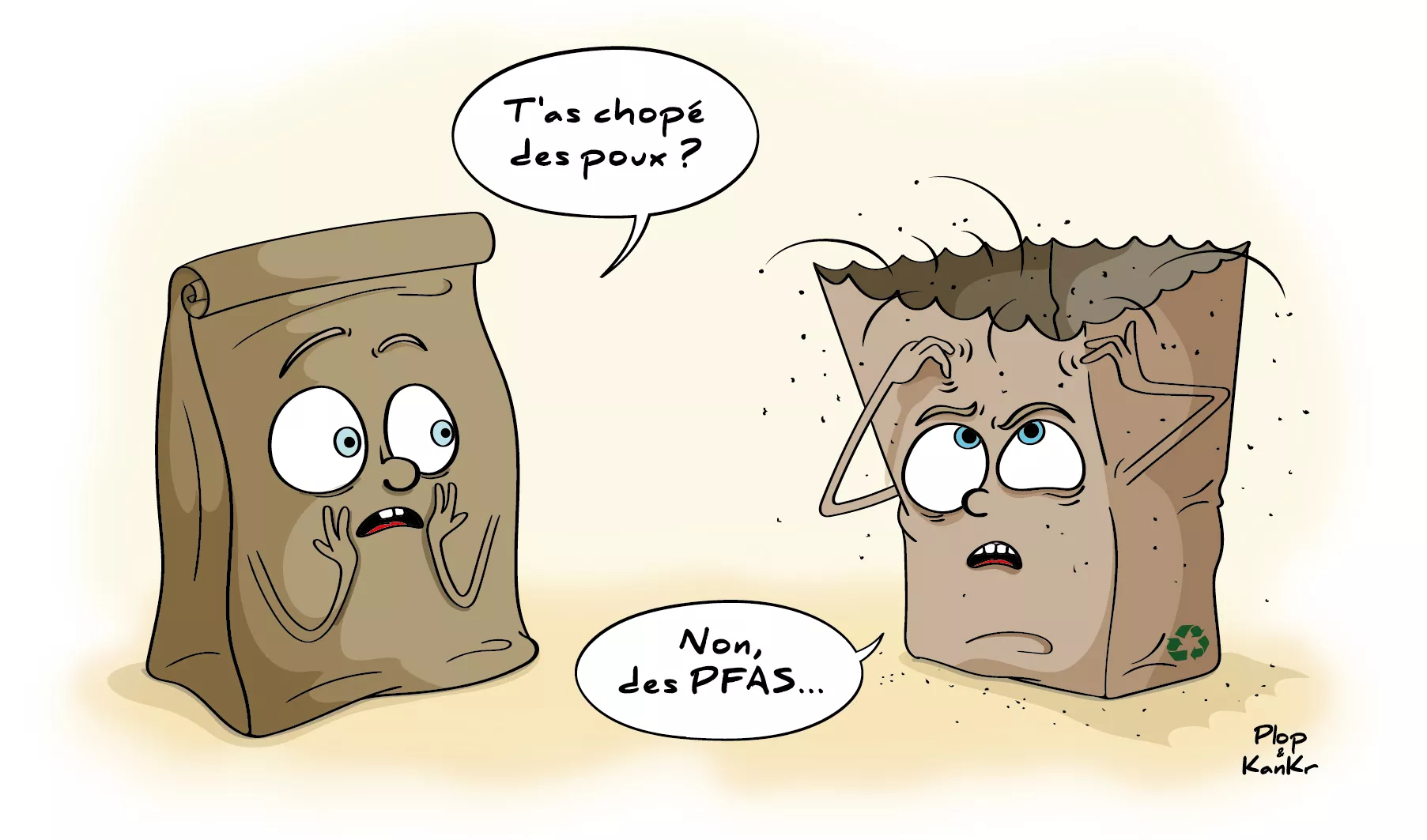 En effet, ces dernières années, plusieurs scandales de pollutions en composés fluorés, et plus précisément en PFAS ne cessent d’être révélés un peu partout autour de nous. Ces substances, de leur vrai nom per- et polyfluoroalkylées, forment une famille représentant plus de 4500 composés chimiques dits « polluants éternels » à cause des liaisons chimiques entre les atomes de Carbone et de Fluor, comptant parmi les plus résistantes à la dégradation. A la différence des éléments inorganiques, les PFAS sont d’origine uniquement anthropique, autrement dit, ils sont introduits dans l’environnement uniquement par l’Homme. Du fait de leurs propriétés, résistance à l’eau, à l’huile, à la graisse et à la chaleur principalement [9], ils vont se retrouver un peu partout dans notre vie de tous les jours : aliments, emballages, ustensiles, produits ménagers, etc. Dans le domaine des emballages alimentaires, ils sont notamment utilisés sous forme d’additifs chimiques fluorés dans la production de papiers ingraissables (sachets de frites, emballages de hamburger, sachets popcorn, etc.).